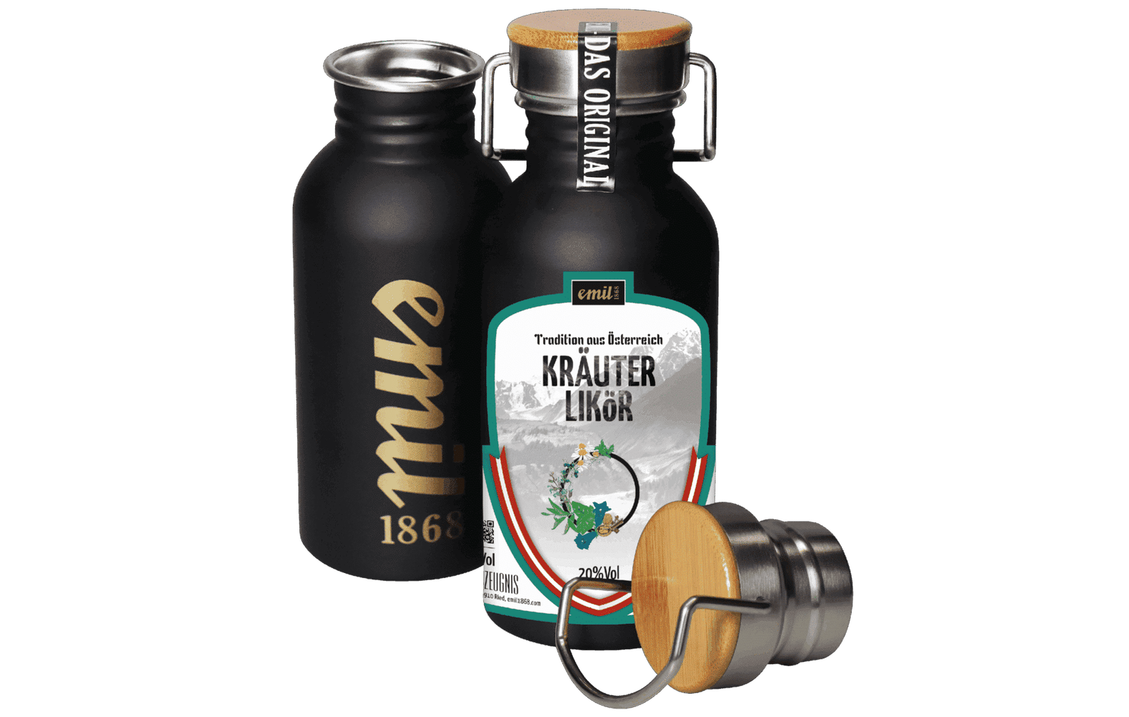 Kräuter Likör 20%vol in Edelstahl Kanne – robuste Likörabfüllung von emil 1868