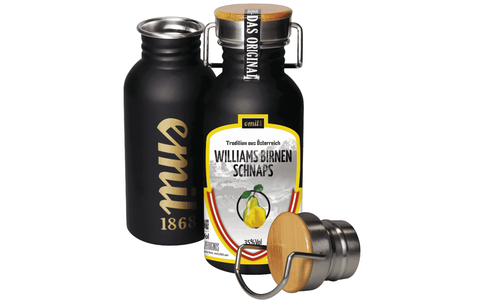 Williams Birnen Schnaps 35%vol in Edelstahl Kanne – robuster Genussbehälter von emil 1868